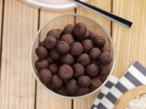 -Shape the cereal mixture into small balls & place them onto a baking sheet.