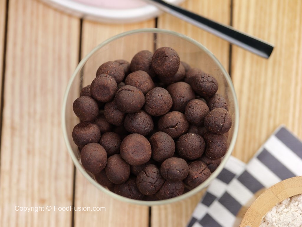 -Cereal mixture ki small balls bana lein & baking sheet per rakh dein.