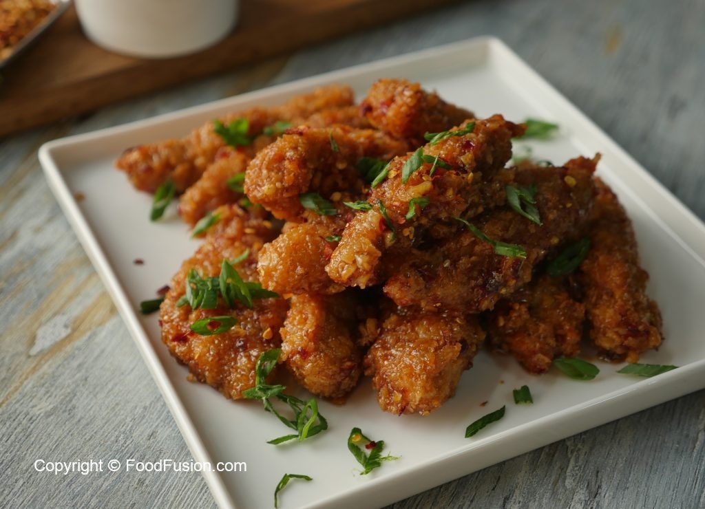 Lal mirch crushed aur hara pyaz ka leaves sa garnish ker ka serve karein!