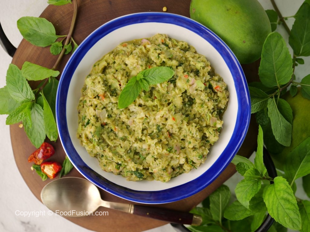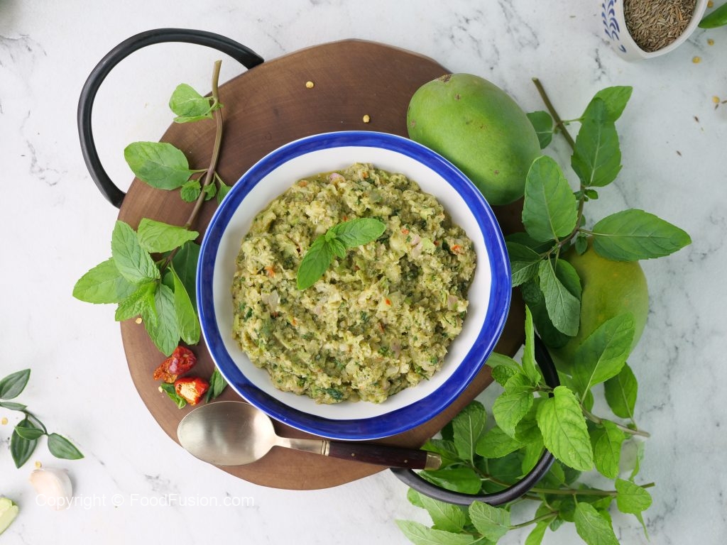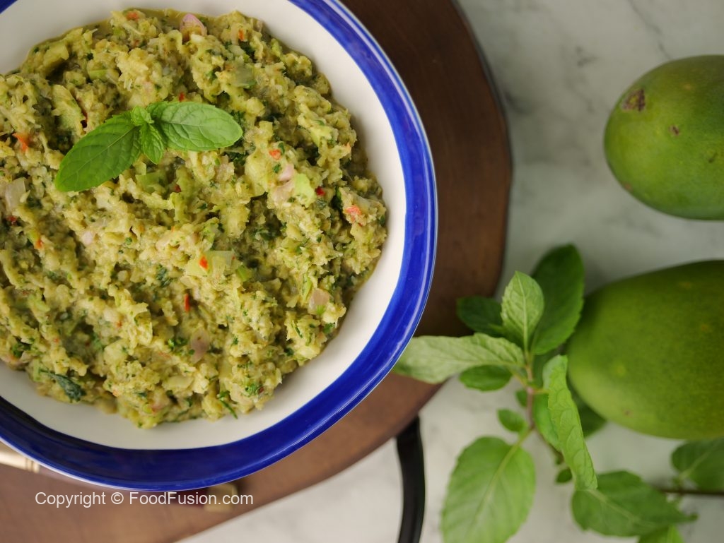 -Peel,deseed,cut raw mangoes into small slices & set aside.