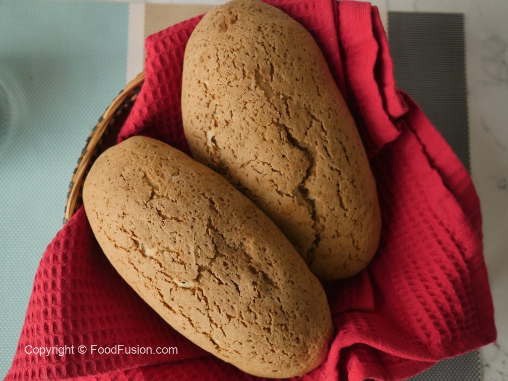 Loaves per pani ka spray karein phir loaves ki top ko rolled crust sa cover ker lein.