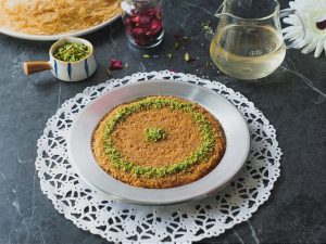 Tayyar kunafa rakh ker dhak dein aur darmiyani ancch per 18-20 minutes kliya pot mein bake ker lein.
