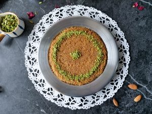 Drizzle prepared sugar syrup & garnish with pistachios & serve!