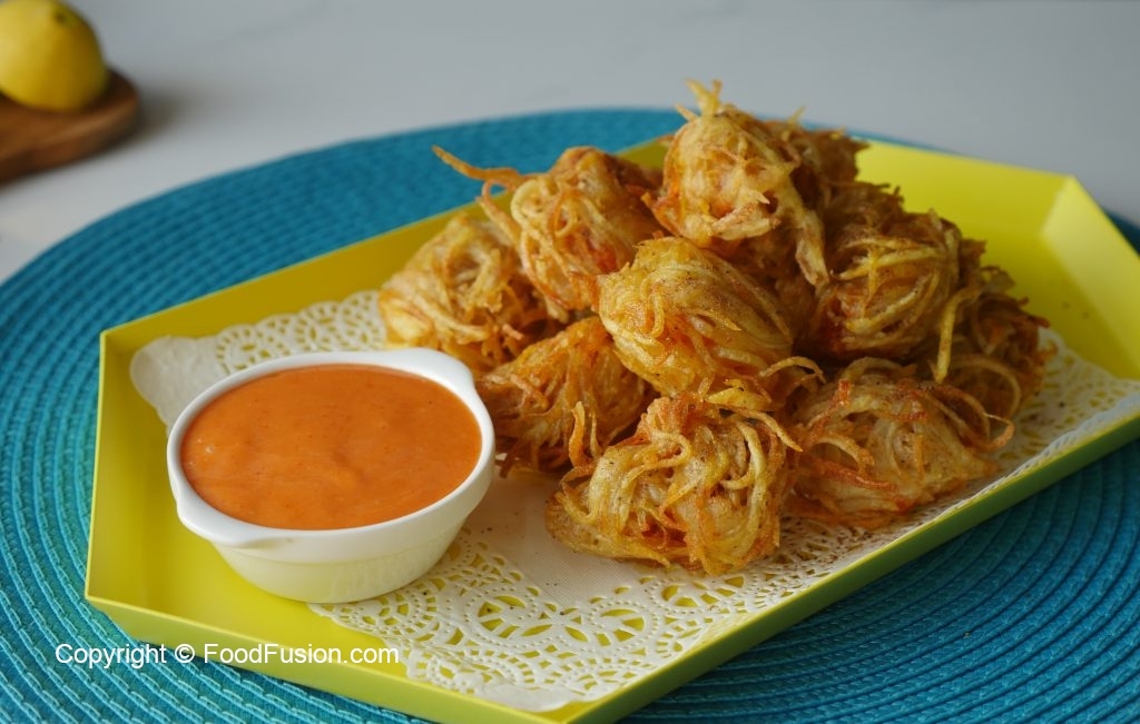 Chaat masala sprinkle ker lein aur dip ka saath serve karein!
