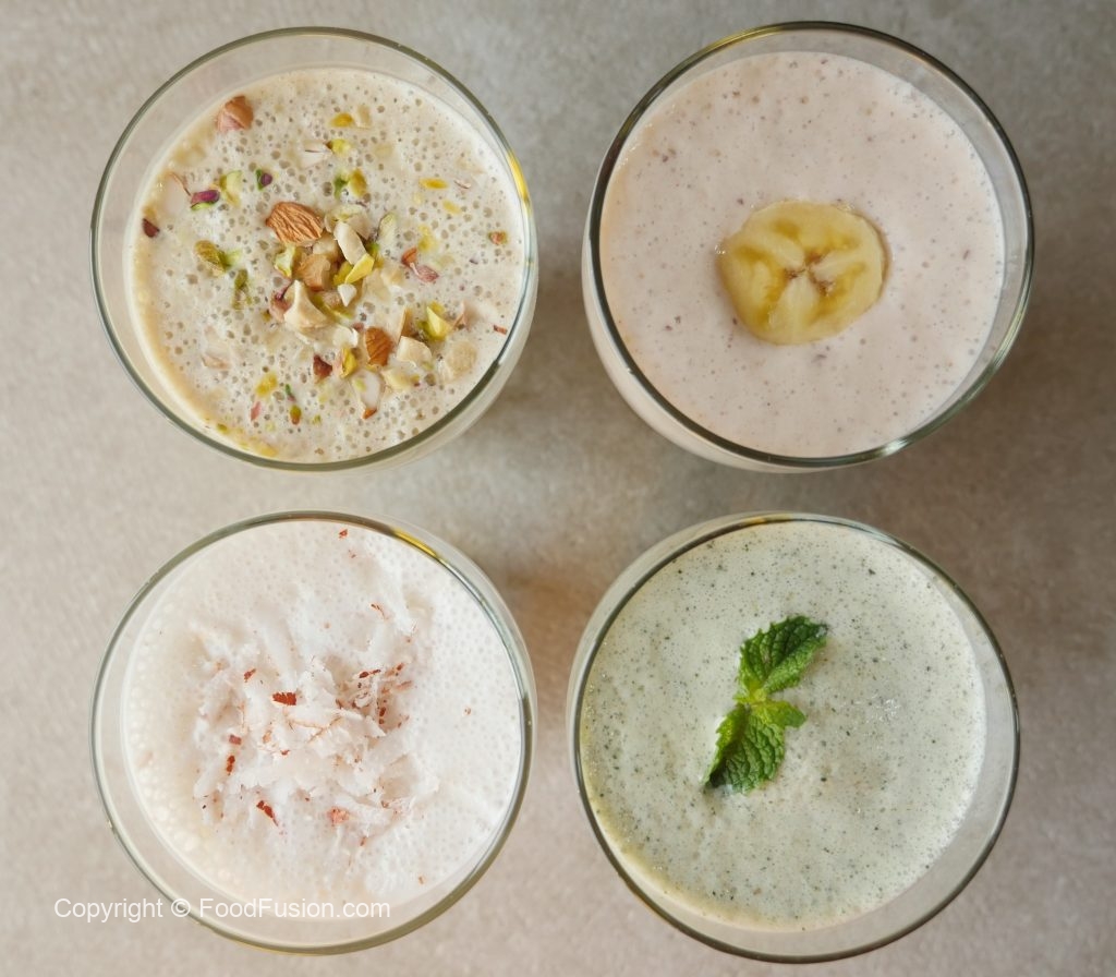 In grinder,add yogurt,mint leaves,cumin seeds,salt,ice cubes,milk,honey and blend until well combined.