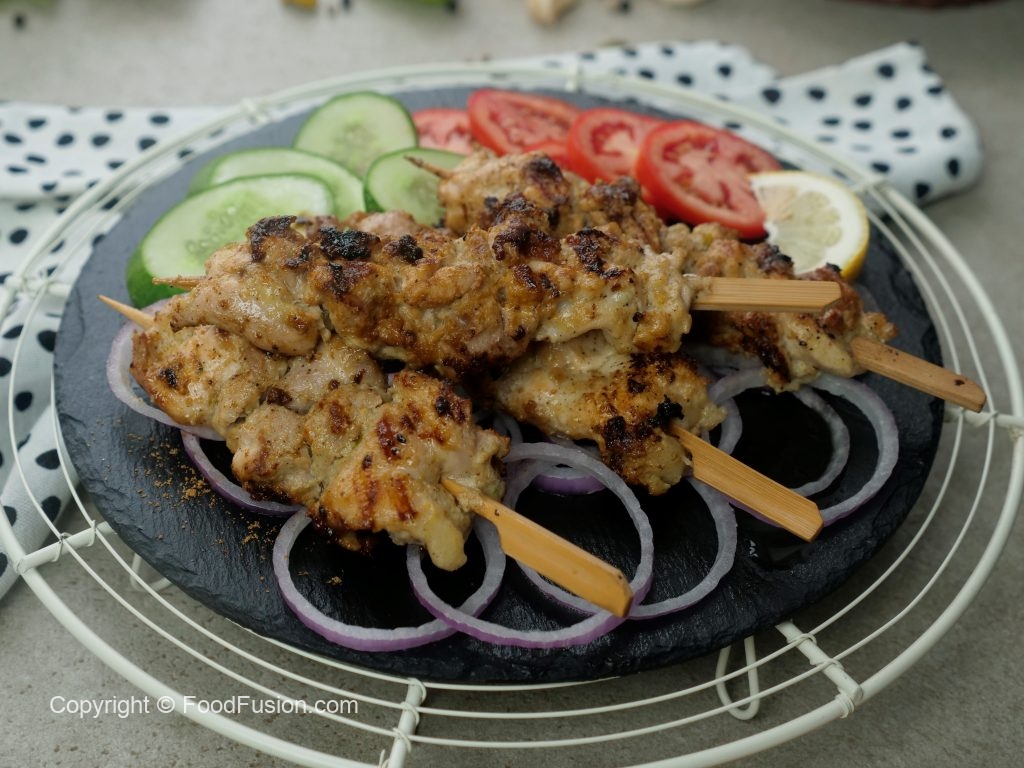 Grease cast iron grill pan with cooking oil & fry skewers from all sides until golden brown.