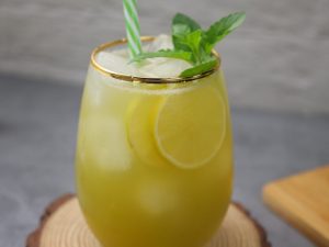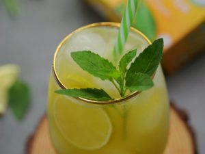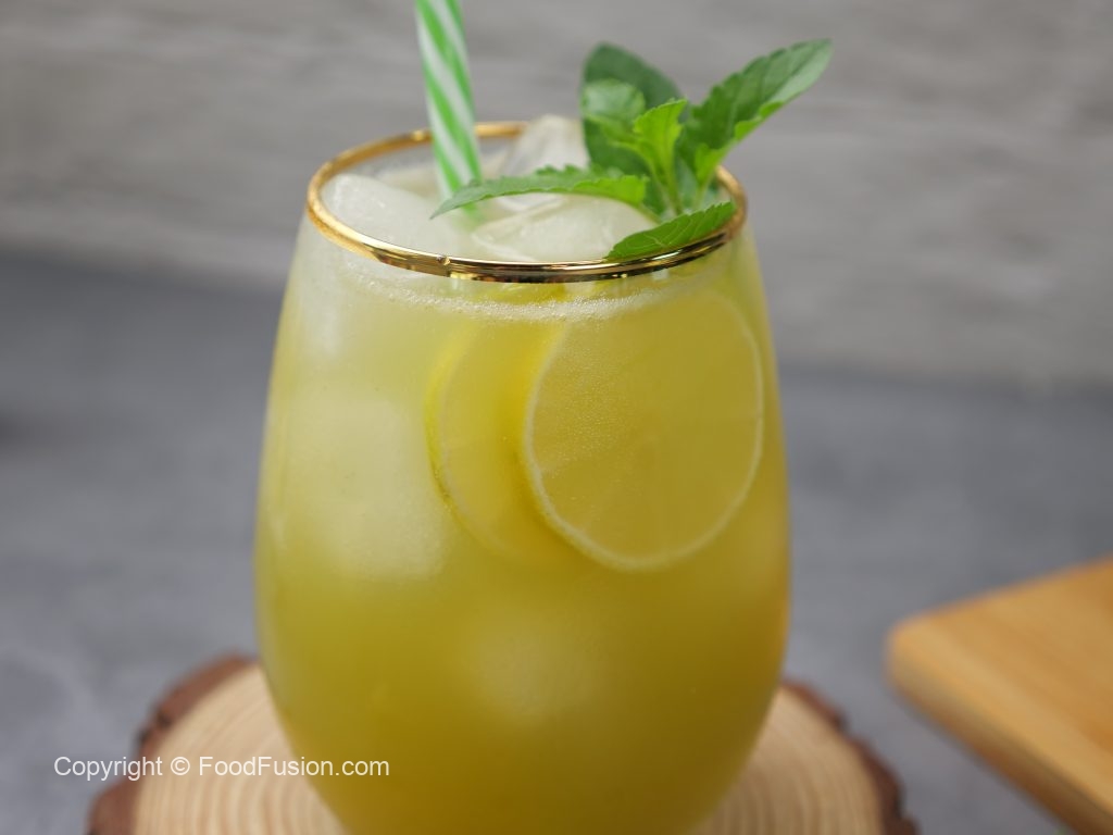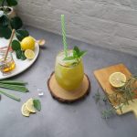 -Blender jug mein lemon,fresh basil leaves,lemon grass,tayyar green tea aur honey dal ker ache tarhan blend ker lein & side per rakh dein