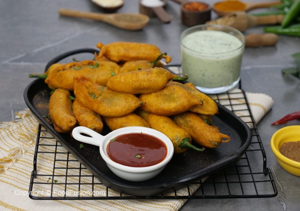 -Aik jug may tayar pakora mix daal kar stuffed hari mirch ko us may dip karen.