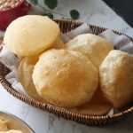 -In a wok,heat cooking oil (160-170C) & deep fry bhatura on medium flame until it puffs up & golden.