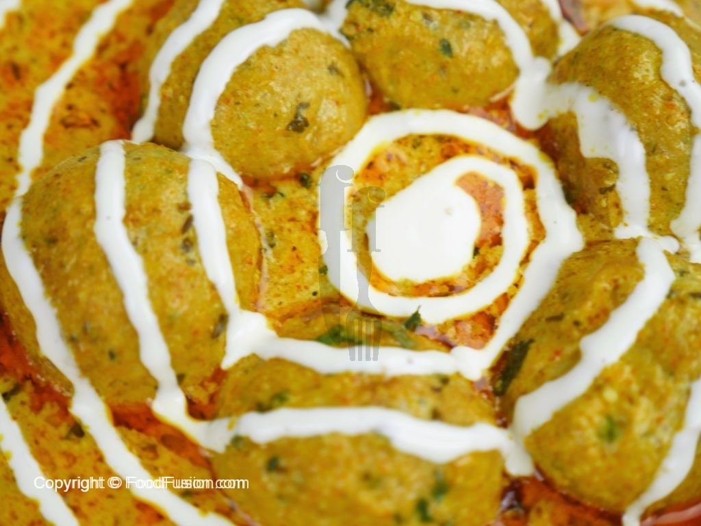 Grease hands with oil,take small portion from mince mixture and shape into small balls (Makes: 12 koftay).
