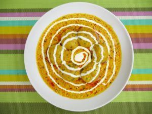 Hara dhania,hari mirch aur olper’s cream sa garnish ker ka serve karein.