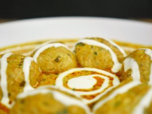 In wok,add oil and fry meat balls/kofta until golden and set aside.