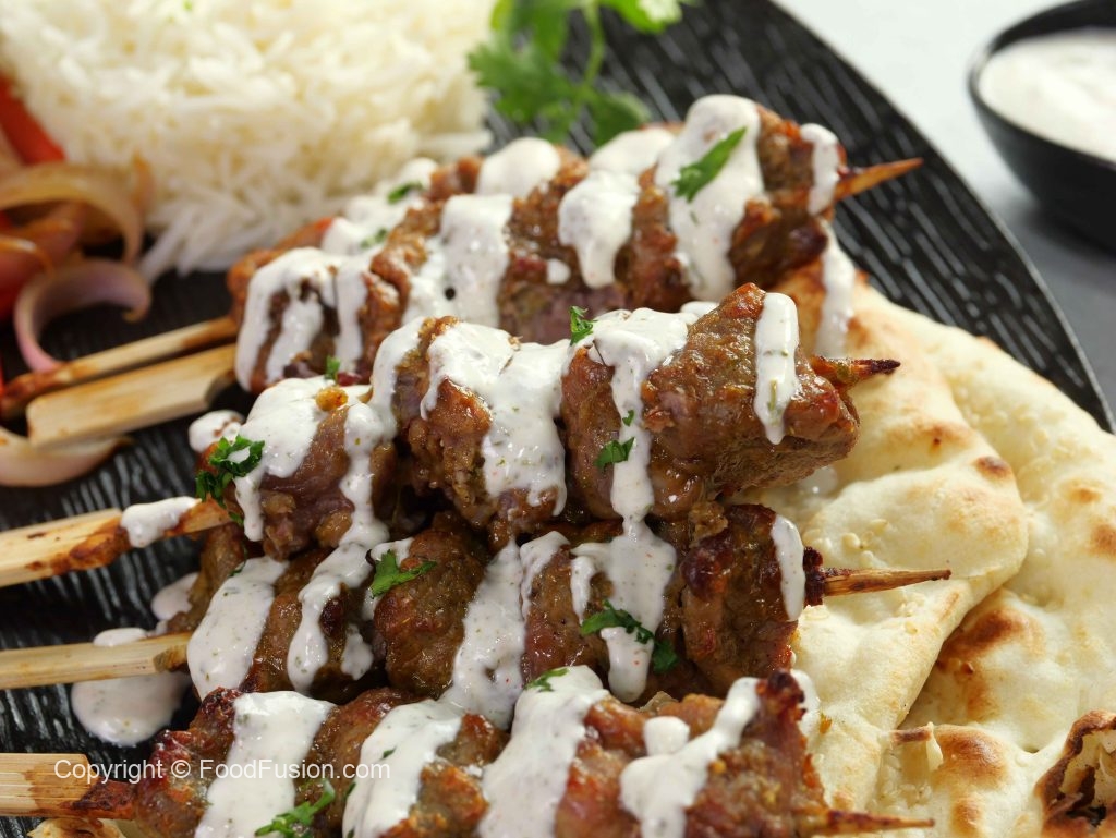 -Oven safe plate par oven grill rakhain,uspe mutton skewers lagayein aur grill ko preheated oven mein rakh dein.