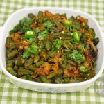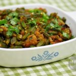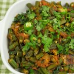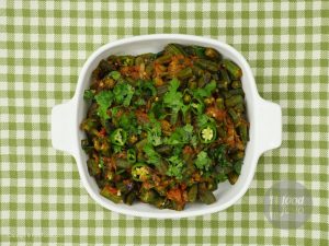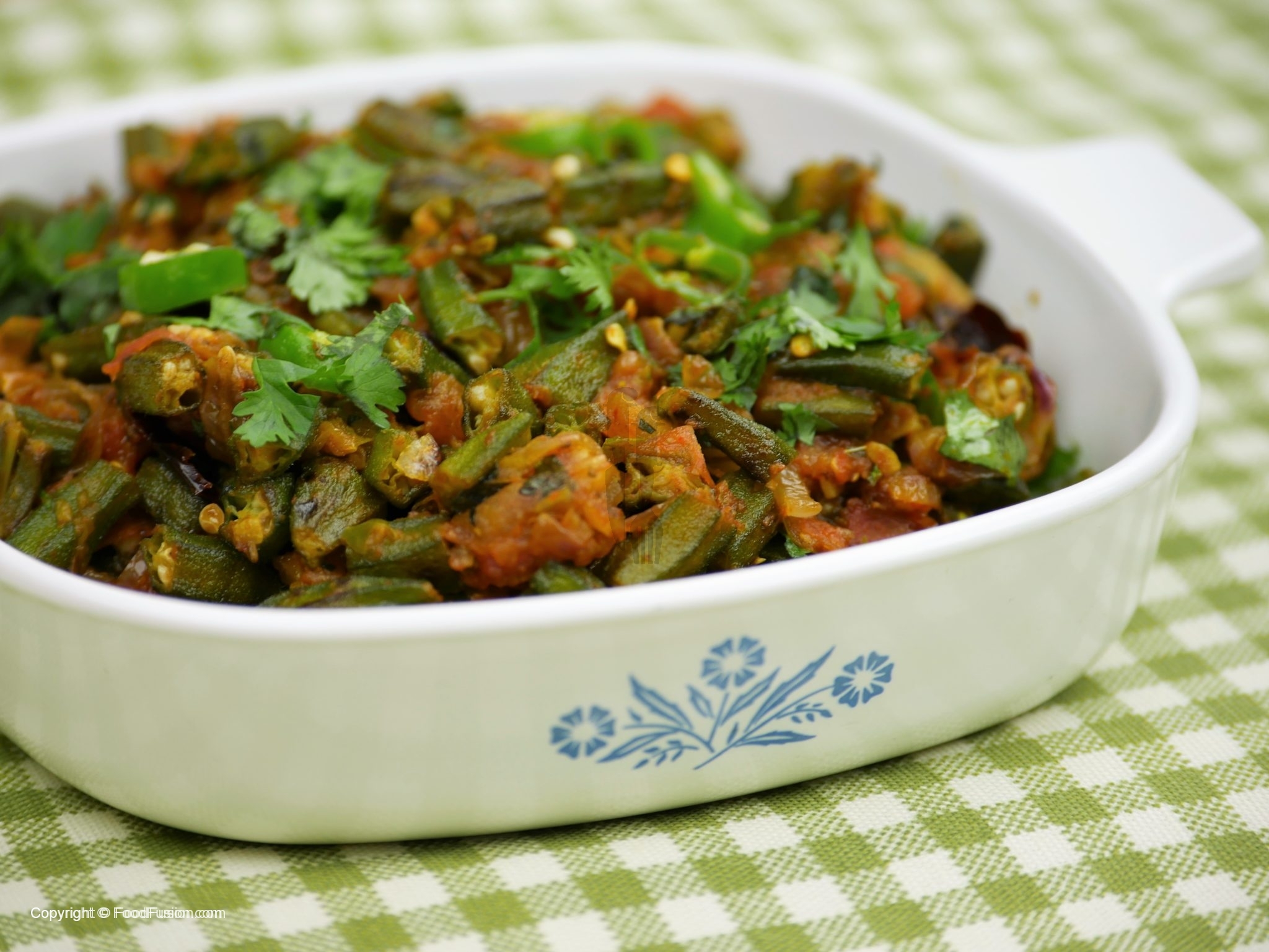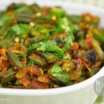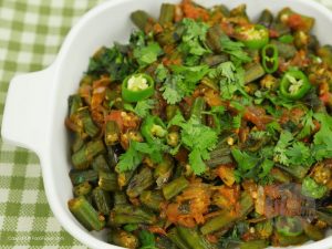 In pot,add oil,okra and fry for 4-5 minutes and set aside.