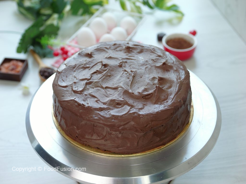 -Place another layer of cake,add & spread prepared chocolate frosting & cover the sides of the cake with frosting & refrigerate for 2 hours.
