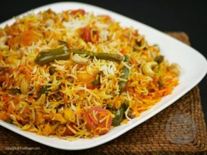 Add rice,mix well and cook on medium high flame until water is reduced (4-5 minutes),cover & steam cook on low flame for 8-10 minutes.