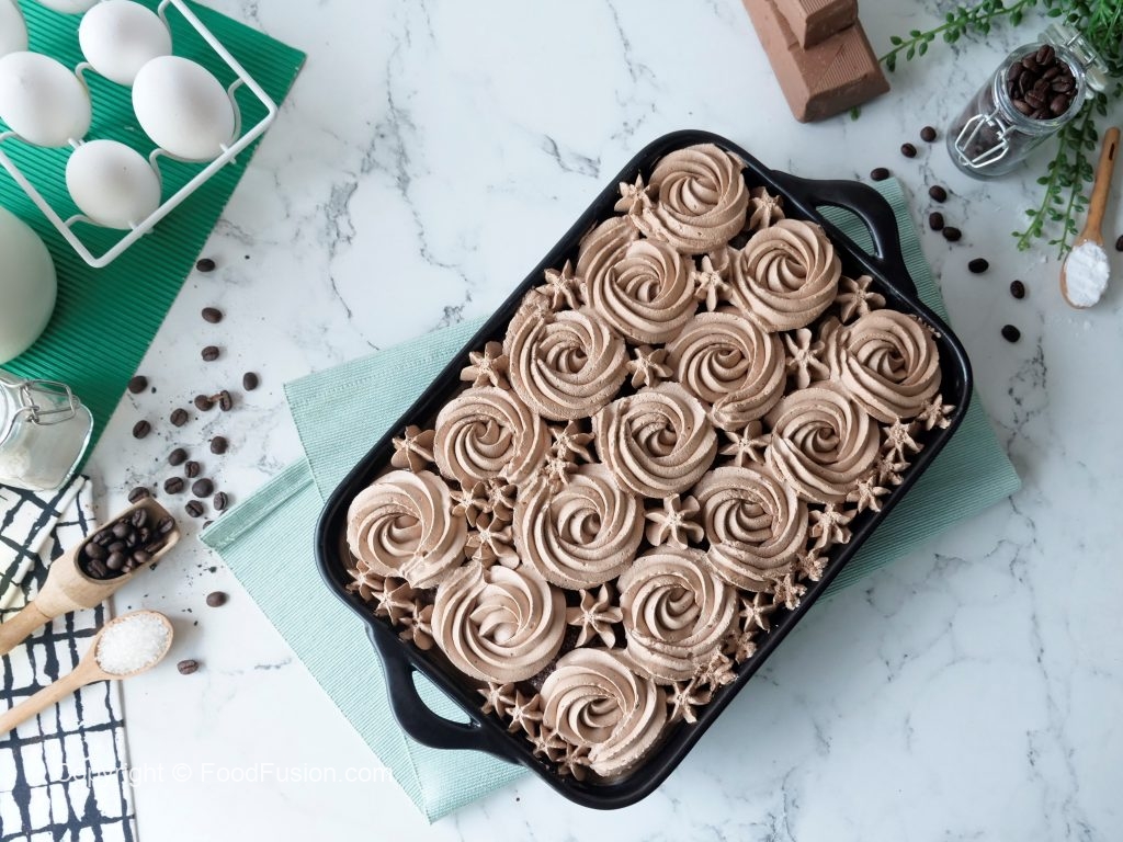nstant coffee (sifter ki madad sa sift ker lein) dal ker ache tarhan beat ker lein & piping bag mein transfer ker lein.
