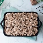8 x 11” inch baking dish ko cooking oil sa grease karein aur cocoa powder dust ker ka excess ko remove ker lein & side per rakh dein.