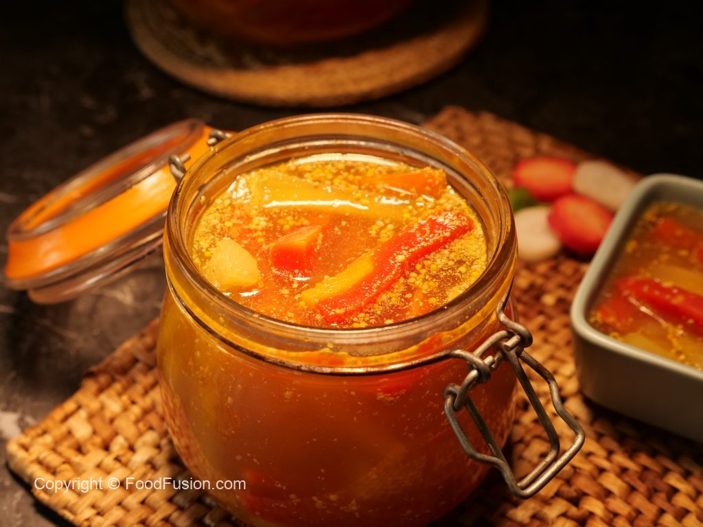 -Once pickle (achar) is ready it can be stored for up to 2 weeks on kitchen counter & up to 3 months in refrigerator.