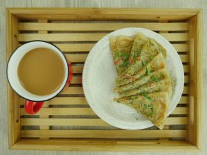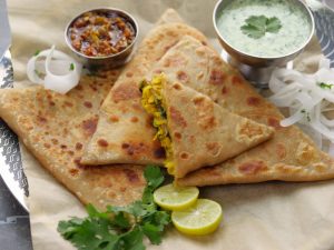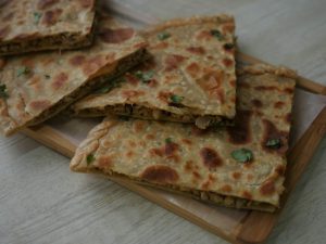 -Heat griddle & fry paratha on medium flame from both sides with clarified butter (makes 5).