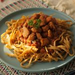 -On a serving plate,add prepared egg noodles,marinara sauce,cooked chicken & serve!