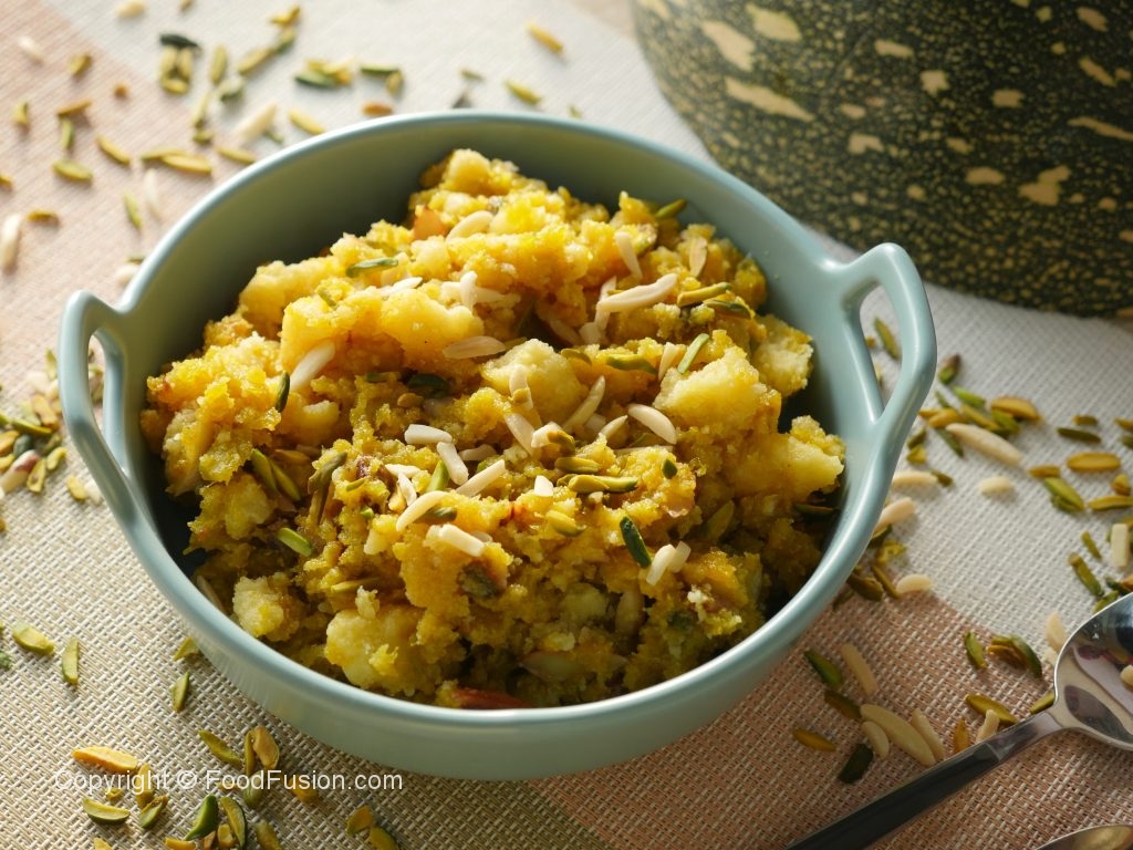 Paithay/Kadu ko do hisson mein cut ker lein aur seeds nikal lein.