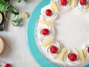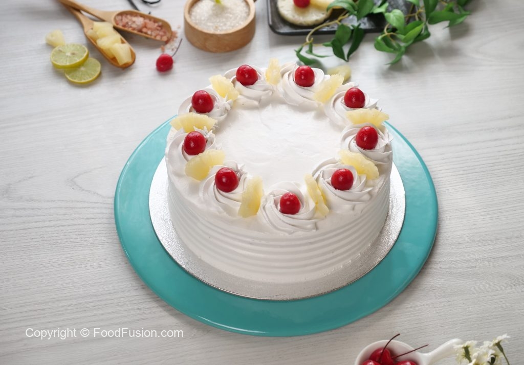 -Pineapple chunks aur frosting ki thin layer laga lein.