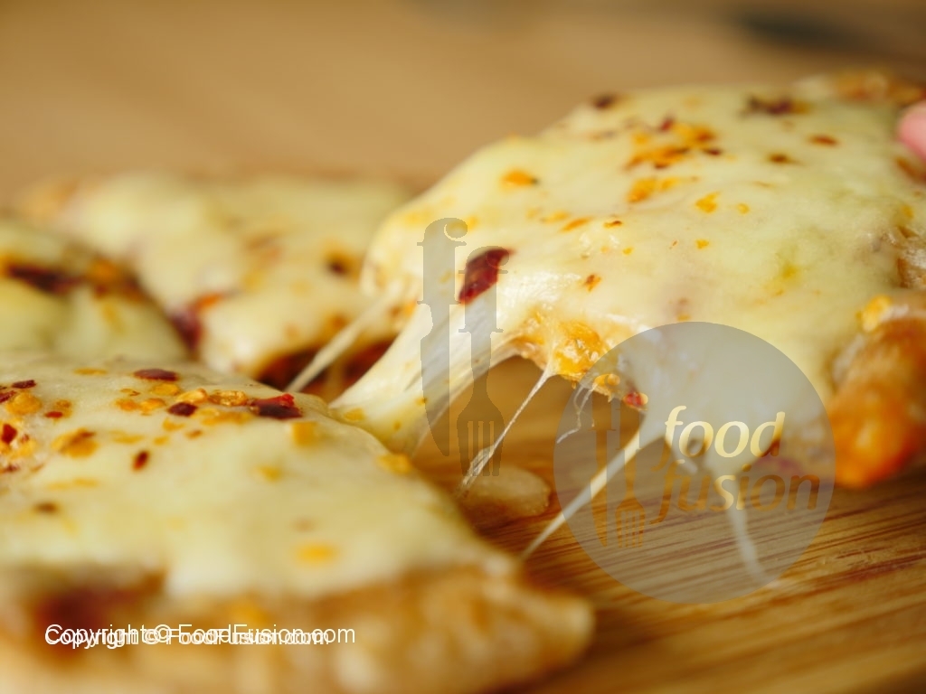 Cheddar cheese,mozzarella cheese aur lal mirch crushed dal dein aur dhak ker halki ancch per cheese melt hunay tak paka lein.