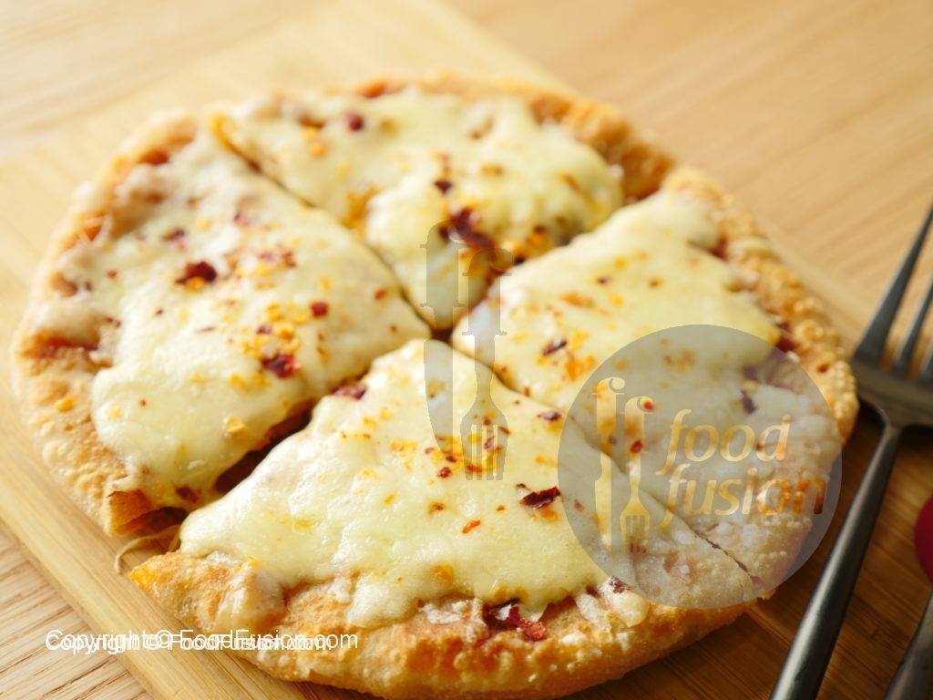 Add cheddar cheese,mozzarella cheese and red chili flakes,cover and cook on low flame until cheese melts.