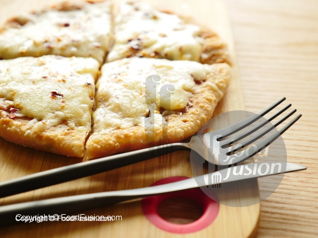 Add cheddar cheese,mozzarella cheese,pizza sauce,garlic powder,red chili crushed,dried parsley,salt and mix well,set aside.