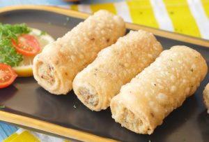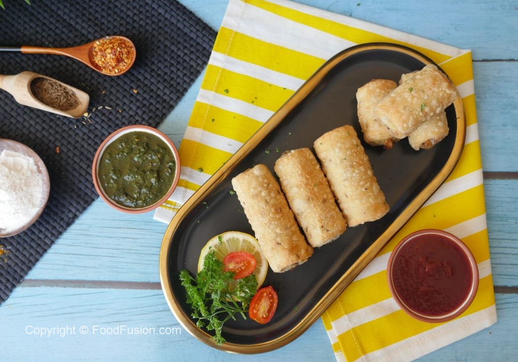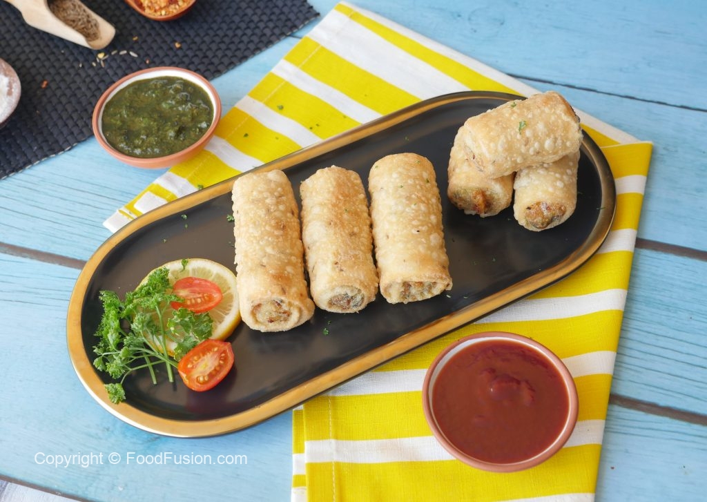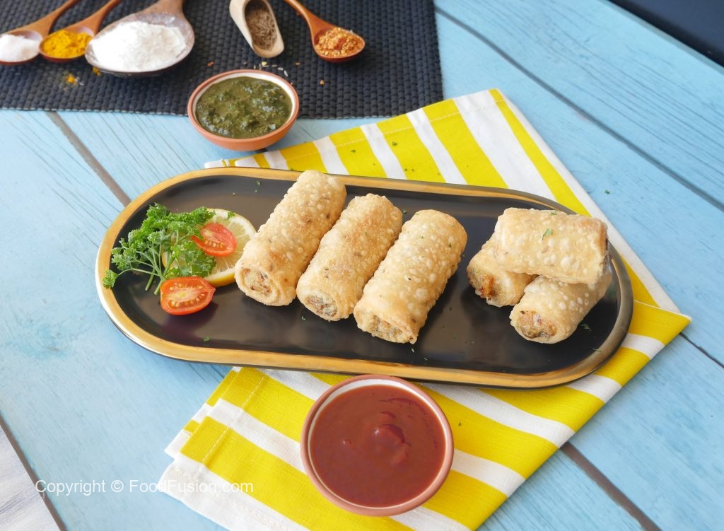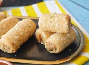 In a wok,heat cooking oil and fry potato samosa roll on low flame until golden.