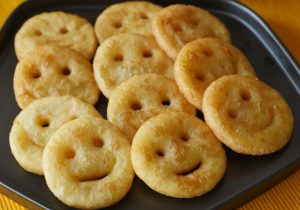 Cutter ki madad sa round shape mein cut ker lein,starw ko cornflour mein dip karein aur straw ki madad sa eyes aur spoon ki madad sa smile bana lein & 30 minutes kliya refrigerate ker lein (makes 19-20).