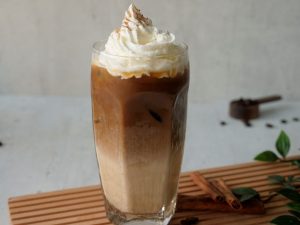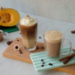In serving glass,add ice cubes,pumpkin spice milk,coffee mixture,whipped cream,sprinkle cinnamon powder & serve!
