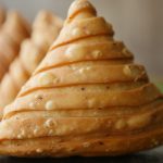 Fill the cone with prepared stuffing,apply water on the edges and bring the edges together and seal the edges properly.