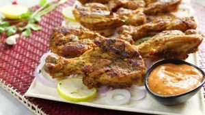 -Bowl mein dahi,cream,anday ki zardi,adra lehsan paste,lal mirch powder,zeera powder,zeera powder,kaju powder,dhania powder,kala zeera powder,zafran,pink salt,lal mirch crushed aur garam masala powder dal ker ache tarhan whisk ker lein.