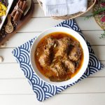 Add yogurt,ginger,garlic,black peppercorns,mace,green cardamom,cloves,cinnamon sticks,bay leaves, cumin seeds,red chilli powder,turmeric powder,salt,fried onion (crush with the help of hand),cashew paste & mix well.
