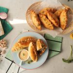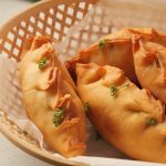 -Tayyar filling (3 tbs) dal dein,edges per pani laga lein aur dough ko lift ker ka press karein aur filling ko seal ker ka pinch & seal ker lein (makes 12-14).