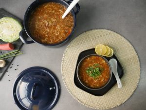 Tayyar chicken yakhni,gajar,shredded chicken,soy sauce,hot sauce,sirka,kali mirch powder,namak, cheeni,tomato ketchup aur bund gobhi dal ker ache tarhan mix karein aur ubal anay ka bad dhak dein aur halki ancch per 5-8 minutes kliya paka lein.