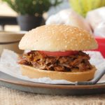 On burger bun,add & spread special mustard sauce,beef mixture,special mustard sauce,tomato and cucumber.