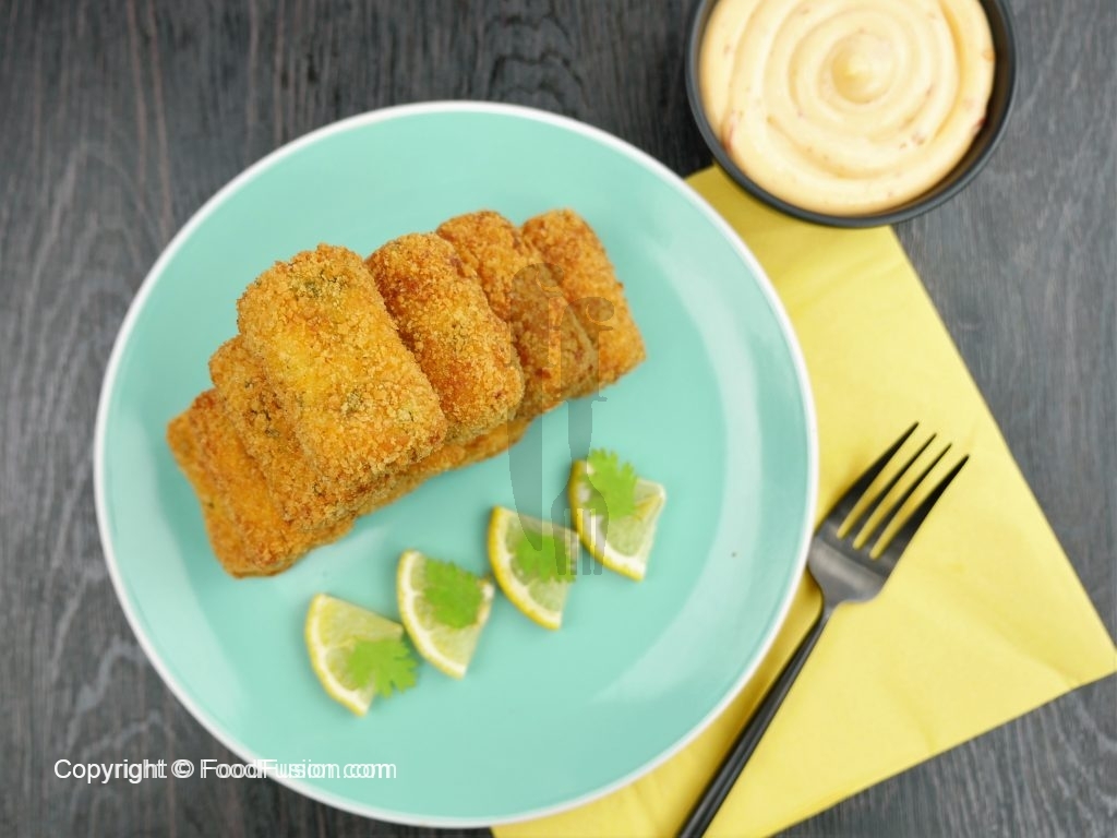 Ab fish croquettes ko maida mein coat ker ka pheetay hoye anday mein dip karein phir bread crumbs mein coat ker lein.