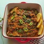 Cover and steam cook on very low flame for 20-25 minutes and basting with the gravy in between then cover again and cook for 3-4 minutes.