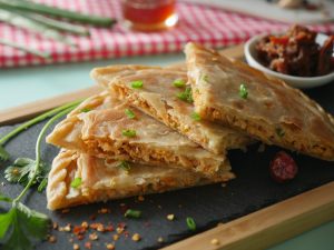 -Take a tray lined with baking paper place prepared paratha & cover with cling wrap.