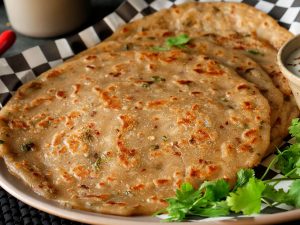 -Heat the griddle, add cooking oil, prepared paratha, fry on medium flame until golden from both sides.
