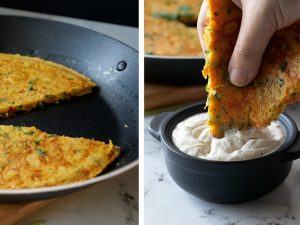 -Chotay jug/glass mein chopped vegetables,pink salt,kali mirch powder,lal mirch powder,lal mirch crushed,anday aur hara dhania dal ker ache tarhan whisk ker lein & side per rakh dein.