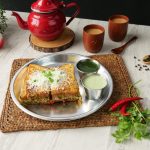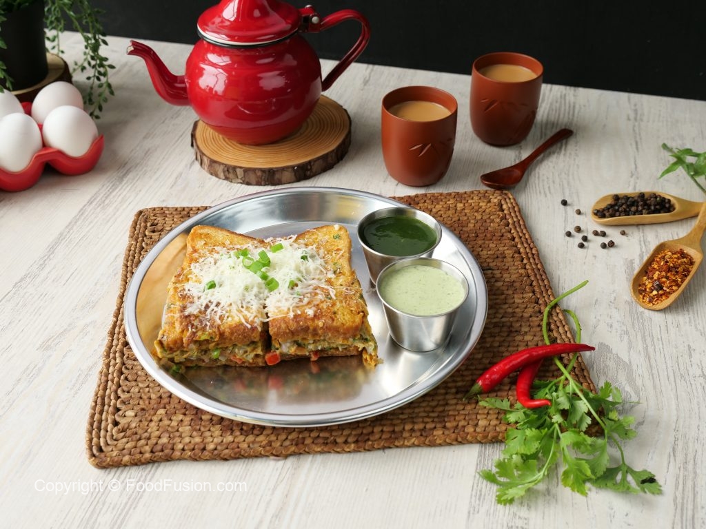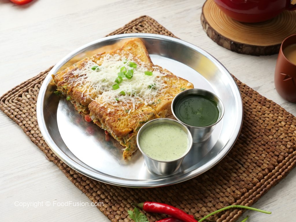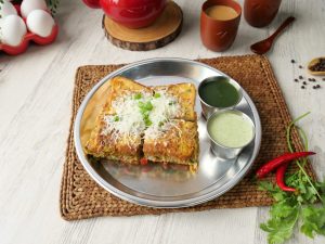 -Cheddar cheese slice,grated mozzarella cheese aur chaat masala dal dein aur dosray bread slice sa cover ka sandwich tayyar ker lein.