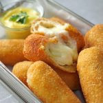-Coat with all-purpose flour then dip into whisked eggs & coat with breadcrumbs then repeat same coating (makes 8-10 fingers).