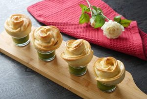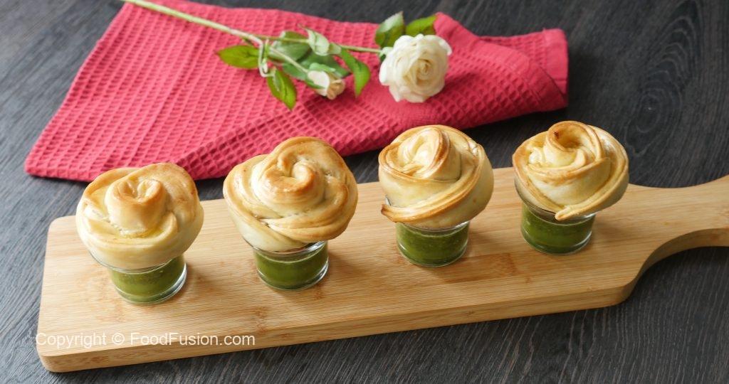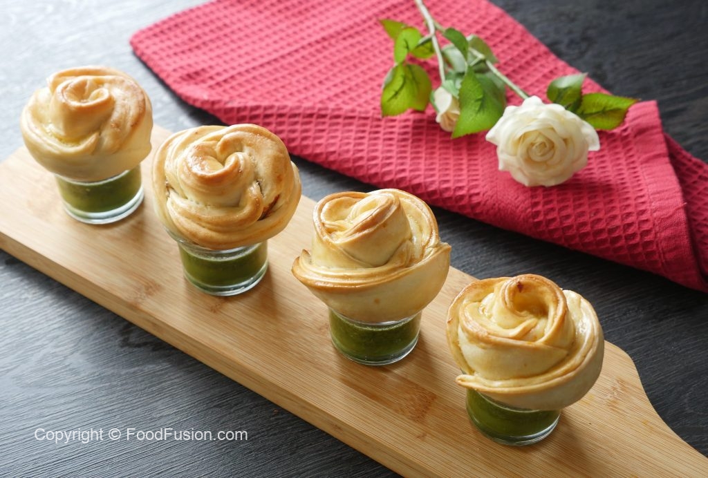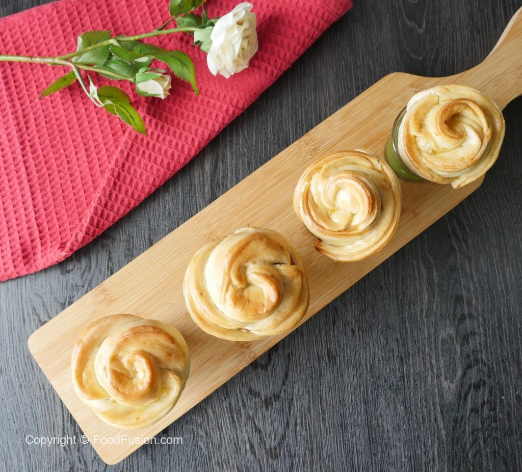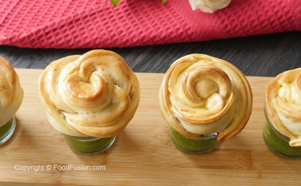 Chicken stuffing dal dein aur end sa carefully roll kertay hoye rose ki shape bana lein (makes 6-8).