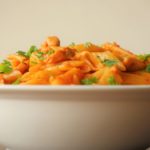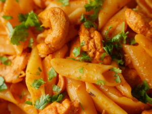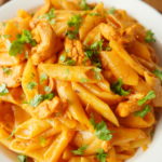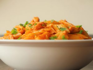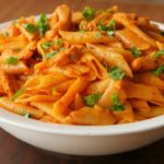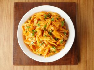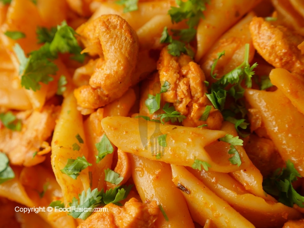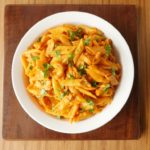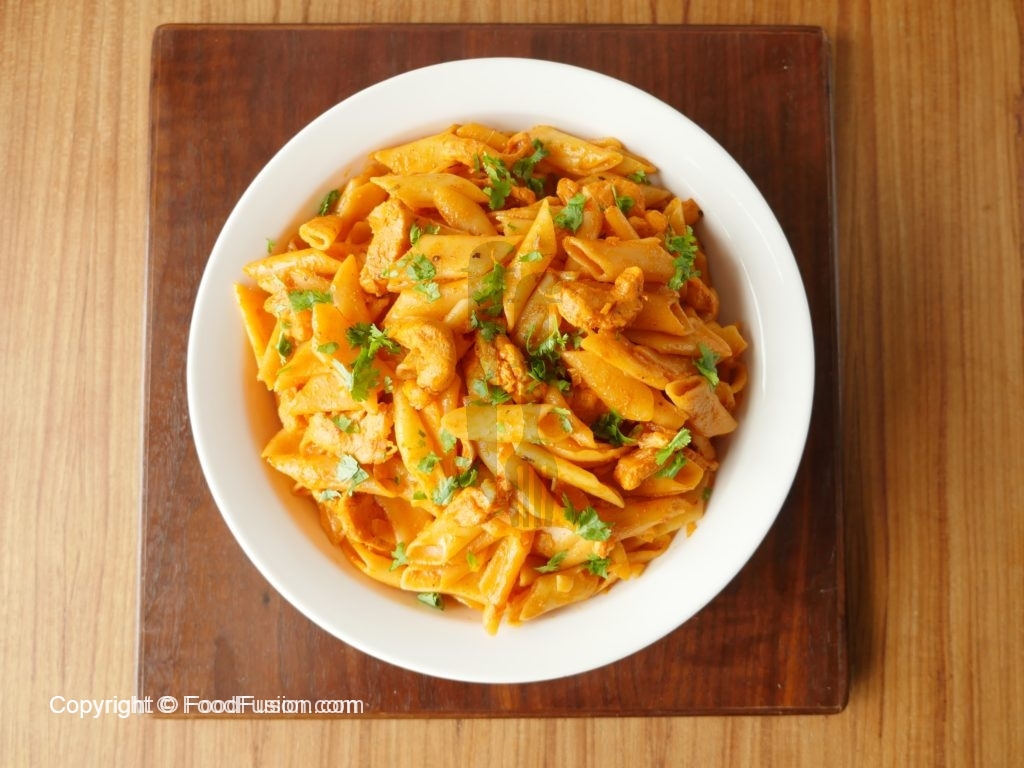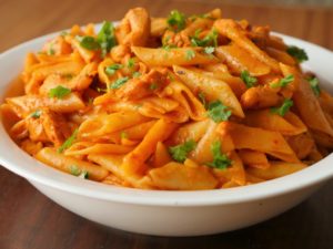 Pasta ko package directions ka mutabiq boil ker lein & side per rakh dein.