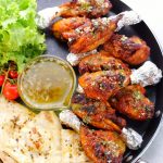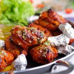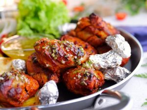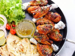 -Brush prepared garlic mint butter sauce on chicken drumsticks & serve with naan!